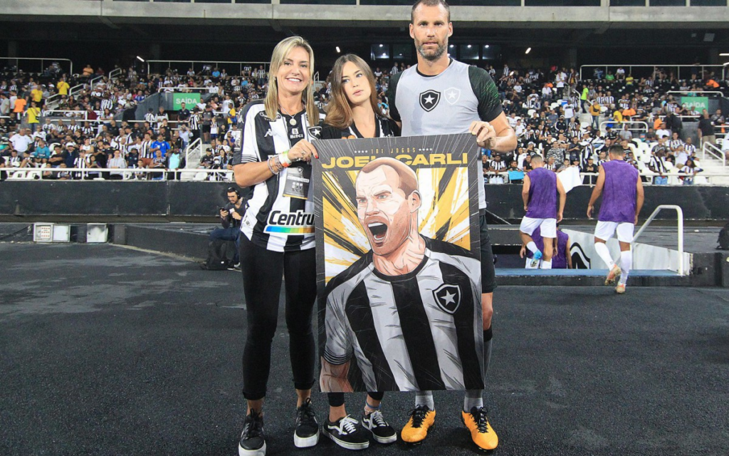 Ao lado da família, Carli já recebeu homenagem do Botafogo – Foto: Vitor Silva/Botafogo