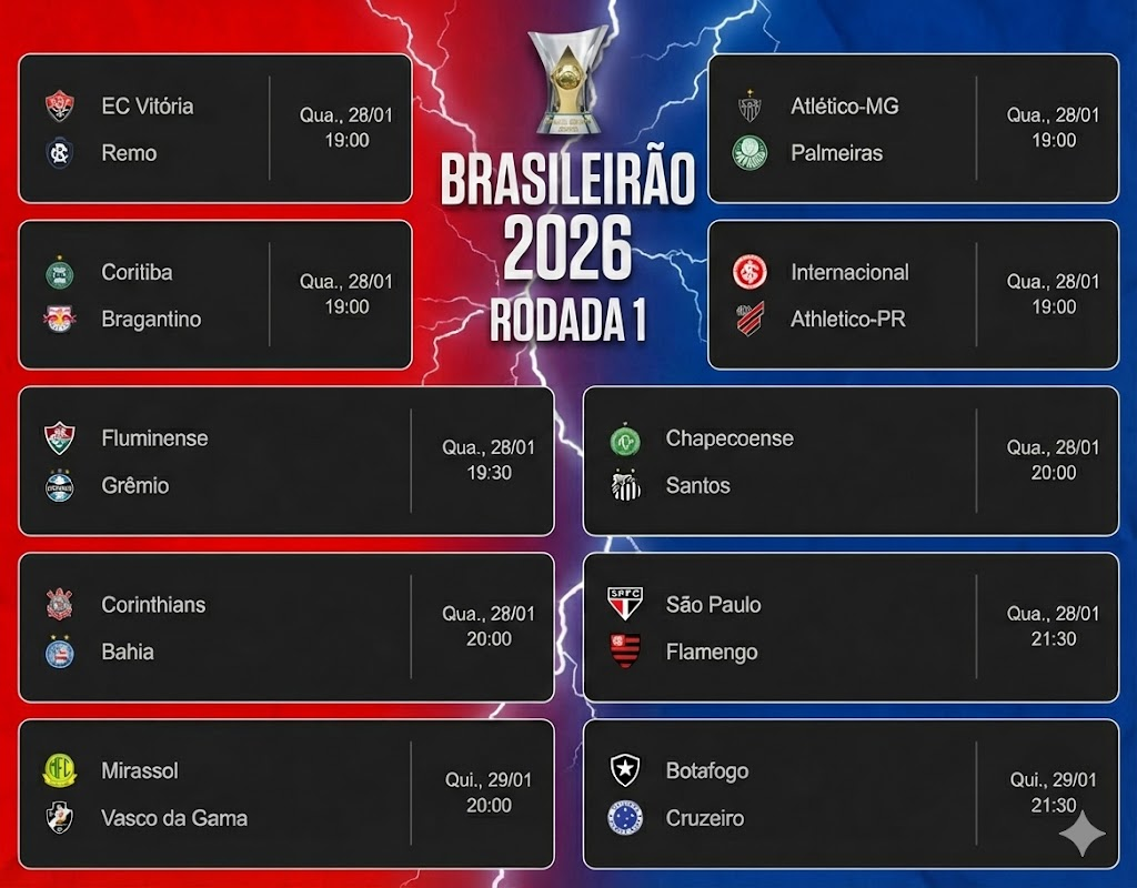 Primeira rodada do Brasileirão 2026 definida – Foto: Google/Gemini